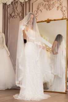 Our team assists in selecting the perfect accessories to complement your wedding dress, ensuring that every detail reflects your unique style and vision from crowns to jewelry to other headpieces.